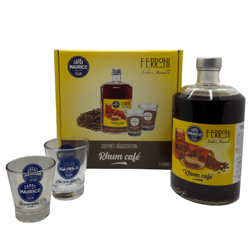 comprend 1 Ferroni Rhum Café 70 CL + 2 Tasses Cafés Maurice